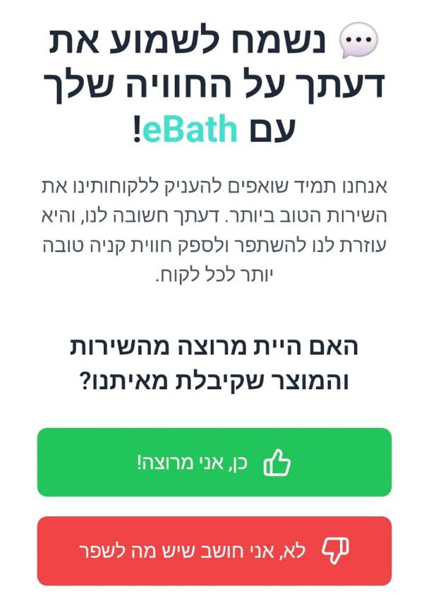 רוב הלקוחות המרוצים לא נוטים להשאיר ביקורת – הם פשוט מזמינים ונהנים. ב-eBath אנחנו לומדים מכל פנייה ומשתפרים.