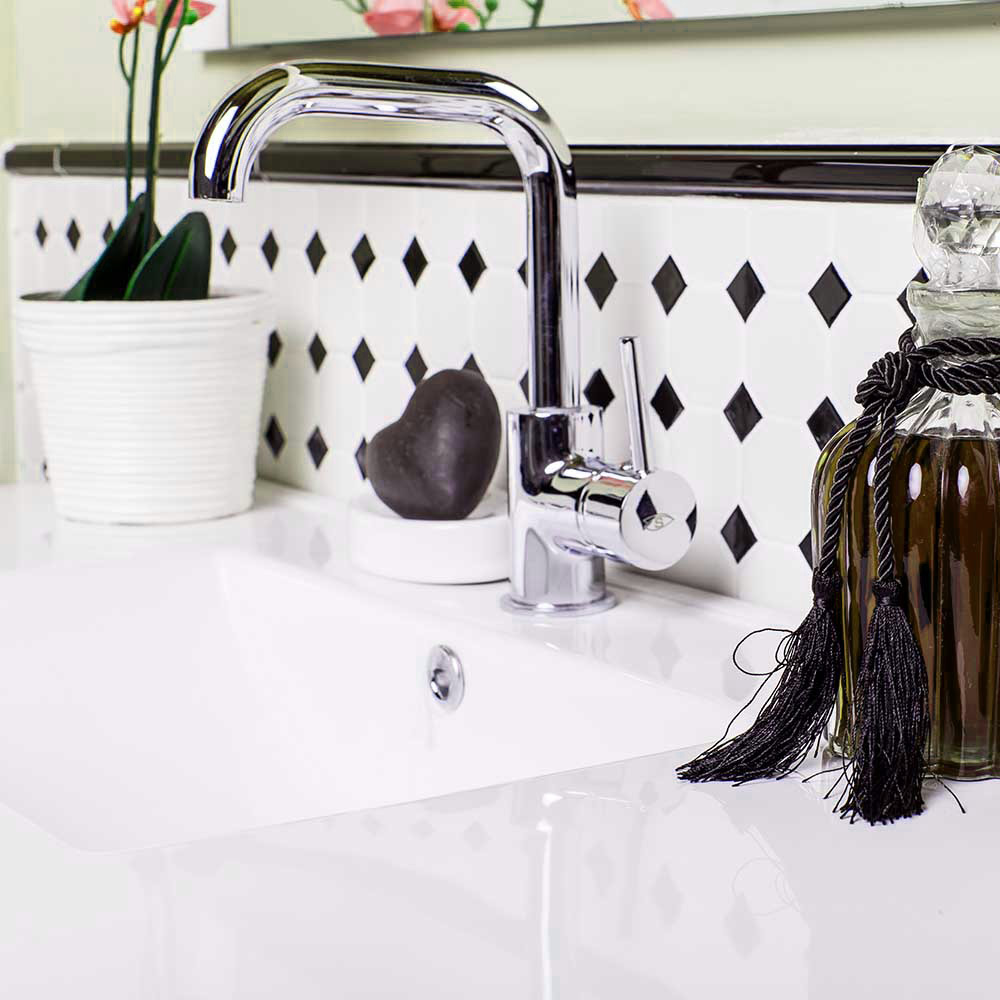 ניתנת האפשרות לסגירת החור בעזרת פקק עיטור לטובת התקנת ברז היוצא מהקיר.