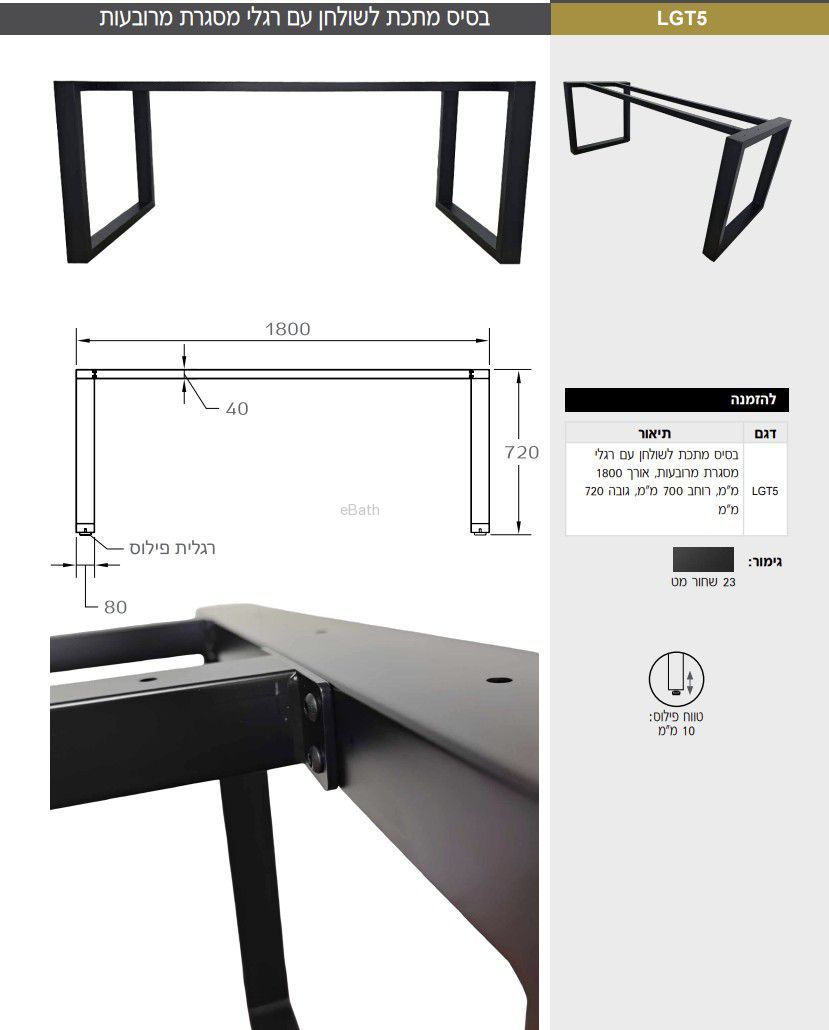 בסיס מתכת לשולחן עם רגלי מסגרת מרובעות