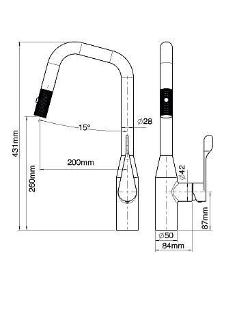 ברז מטבח נשלף פיה מסתובבת איירון מוברש