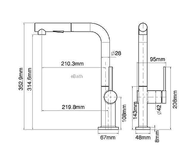 ברז מטבח נשלף ריג׳נט ישר ניקל מבריק