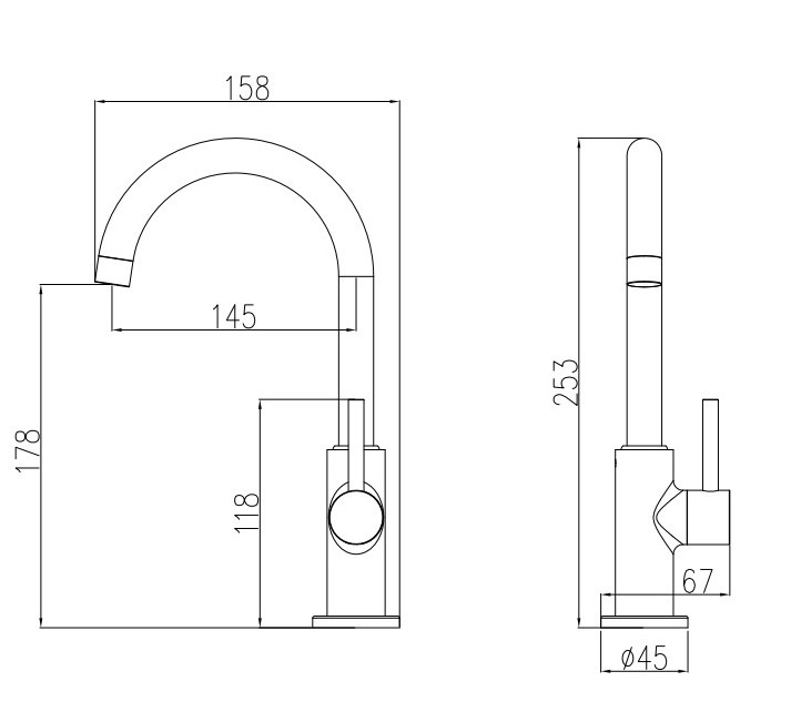 ברז פיה קשתית מים קרים, מוברש ידית סטיק Claer