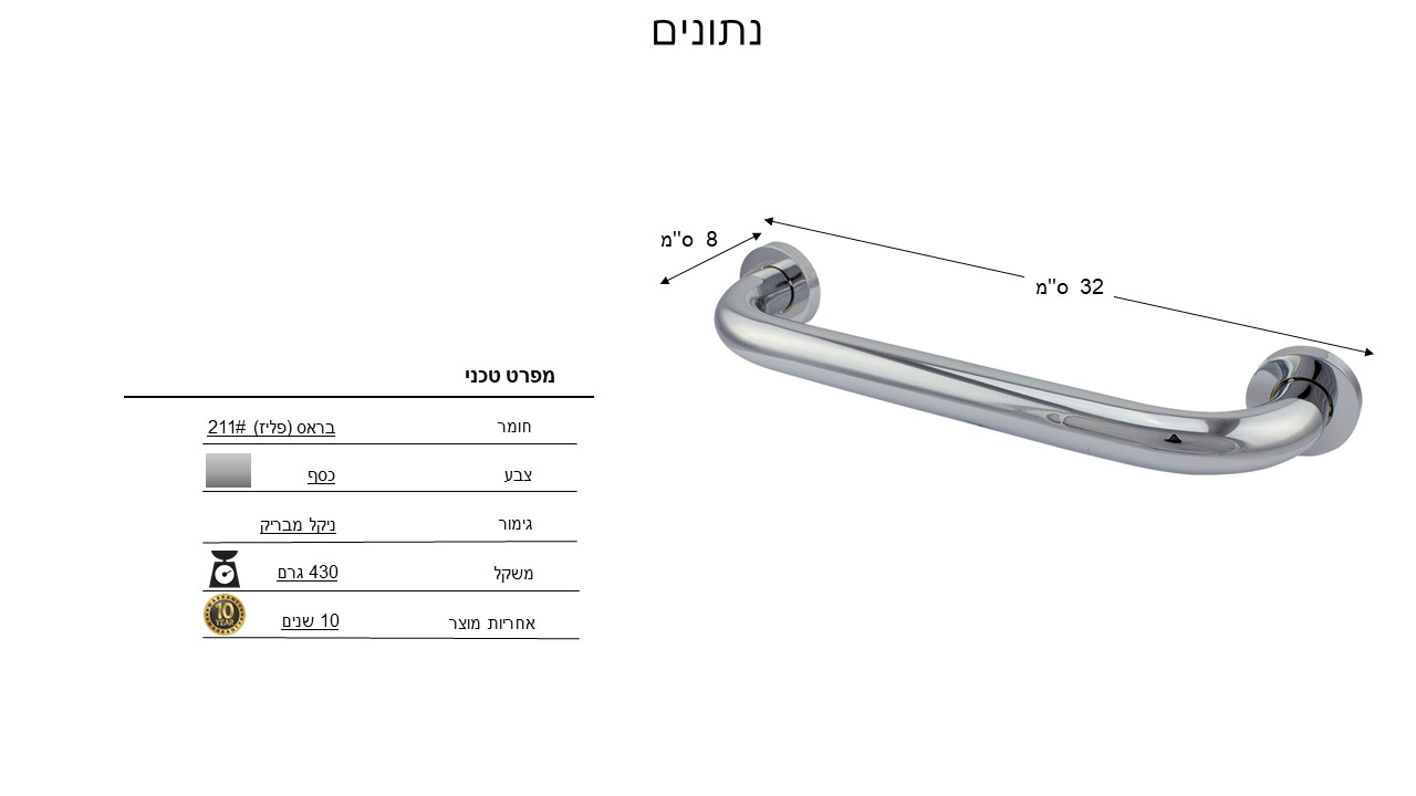 ידית אחיזה לתליה מקלחת 30 ס''מ