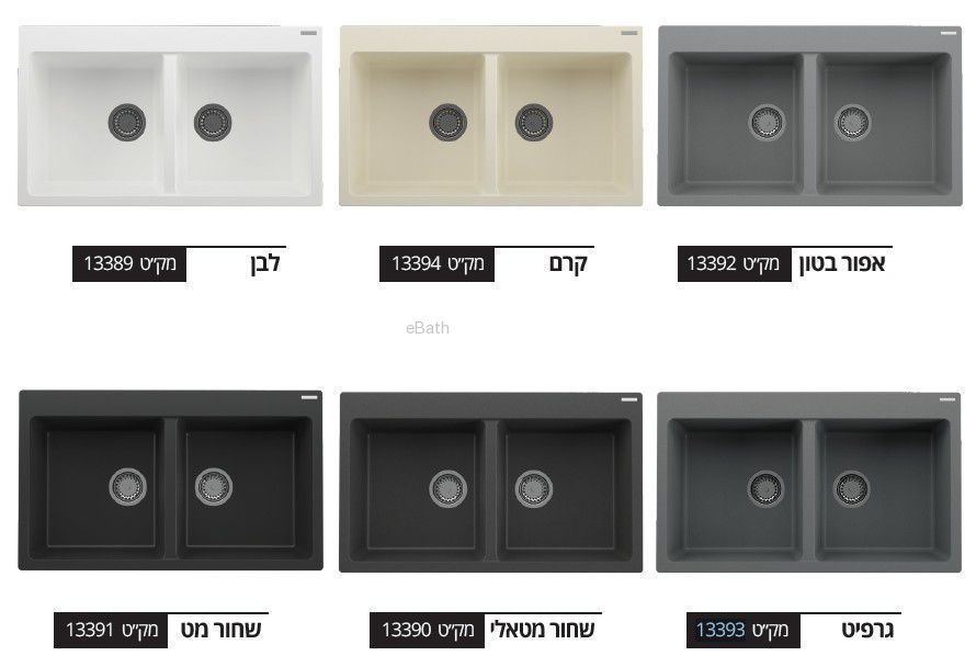 כיור מטבח גרניט כפול 86 ס"מ במבחר צבעים.