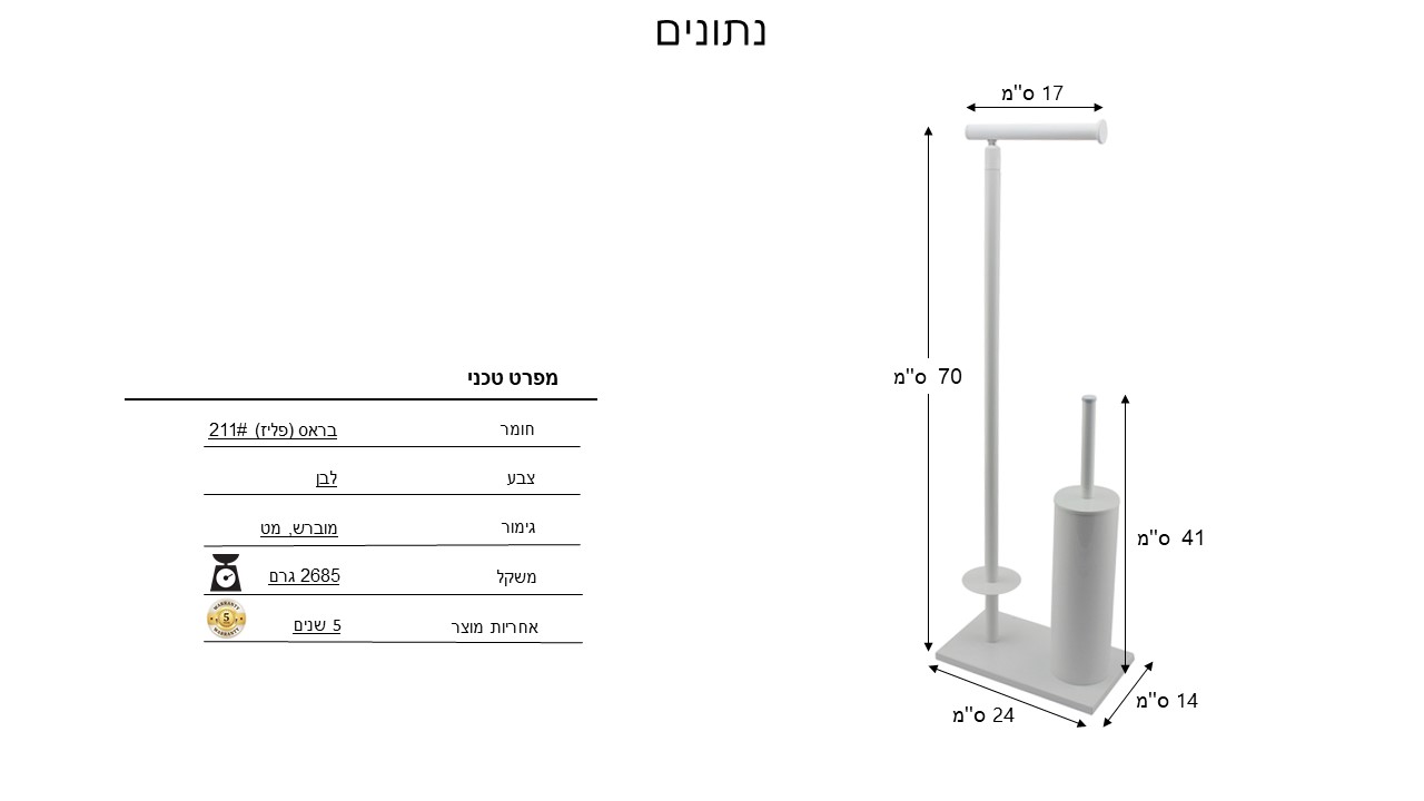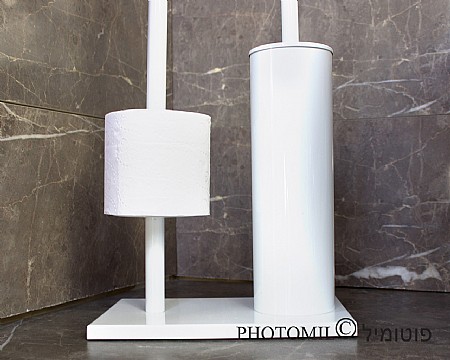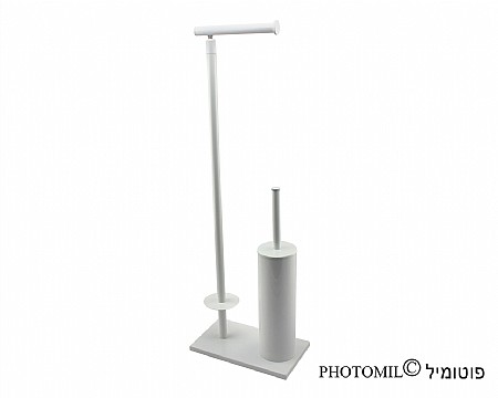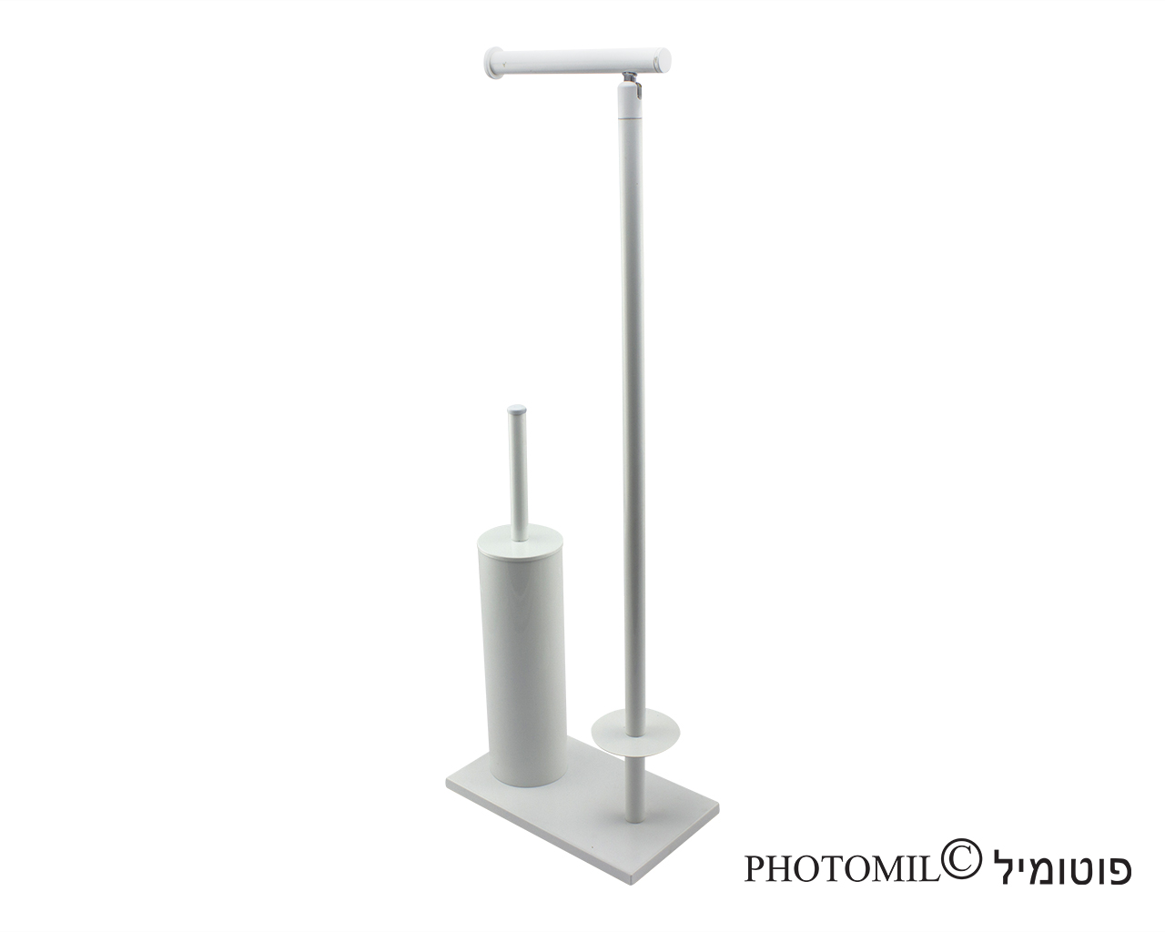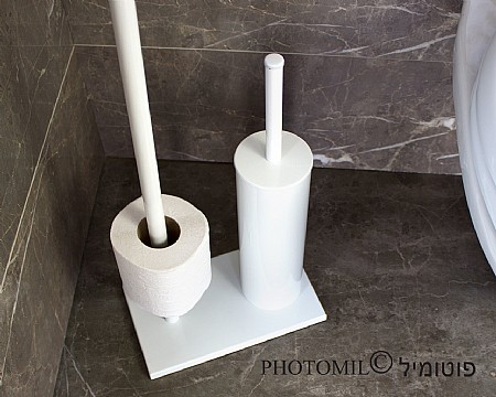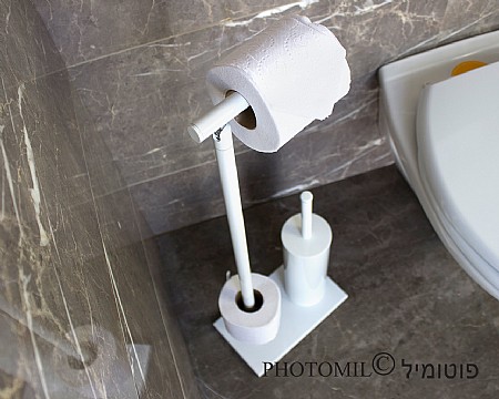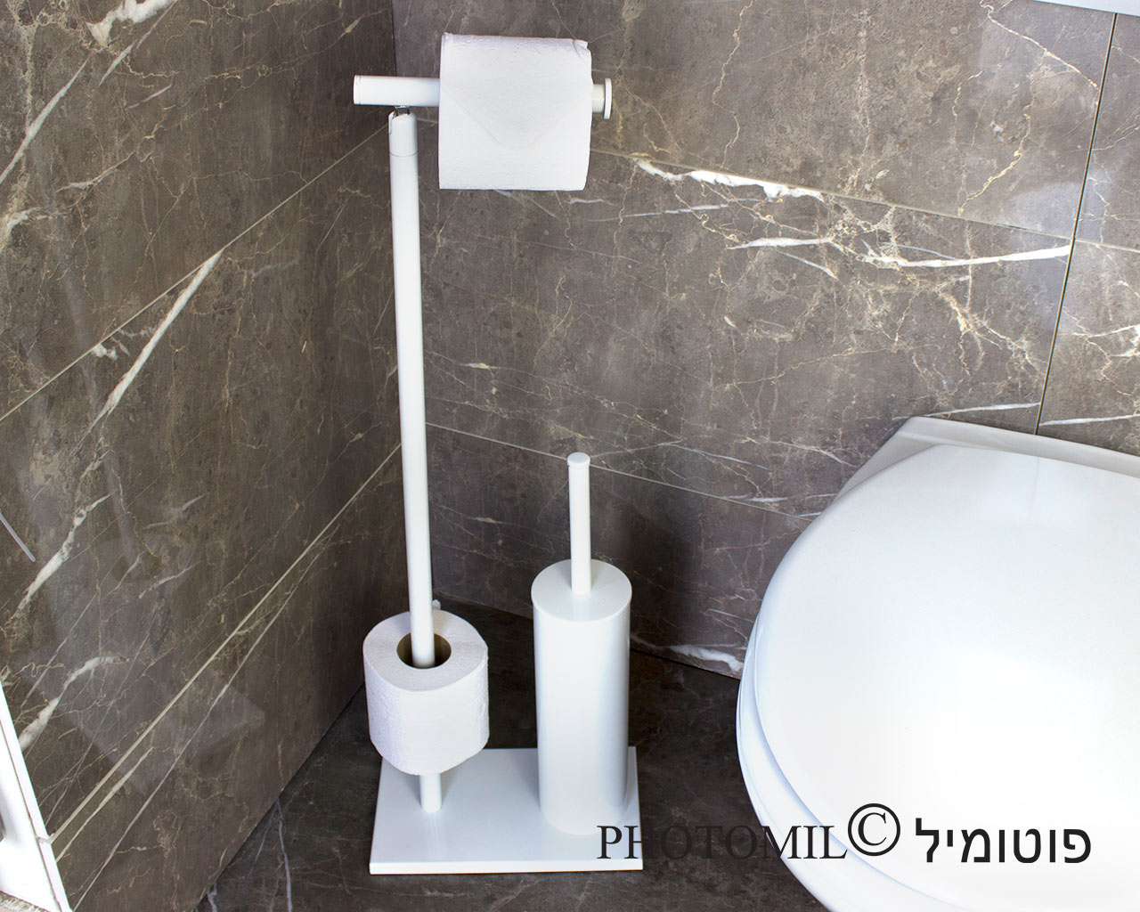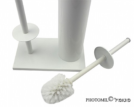 מעמד לנייר טואלט Brass לבן עם מברשת אסלה