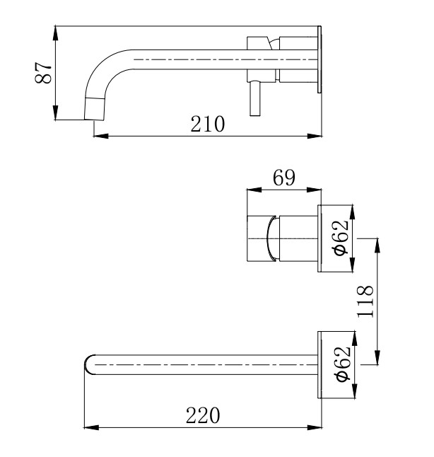 מערכת קיר לכיור רחצה, ניקל מוברש ידית סטיק