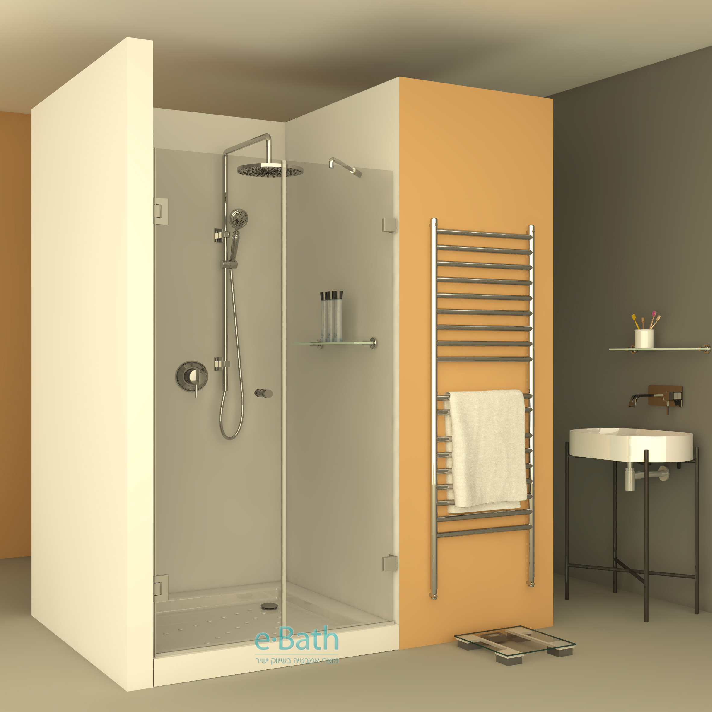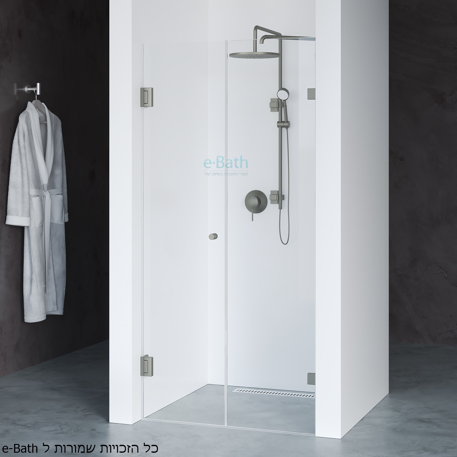 - מקלחון חזית המורכב מדופן קבוע ודלת הנפתחת פנימה והחוצה.