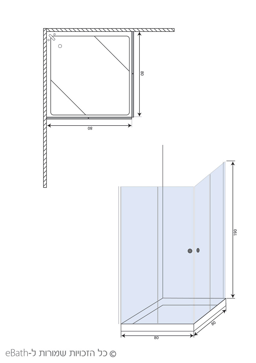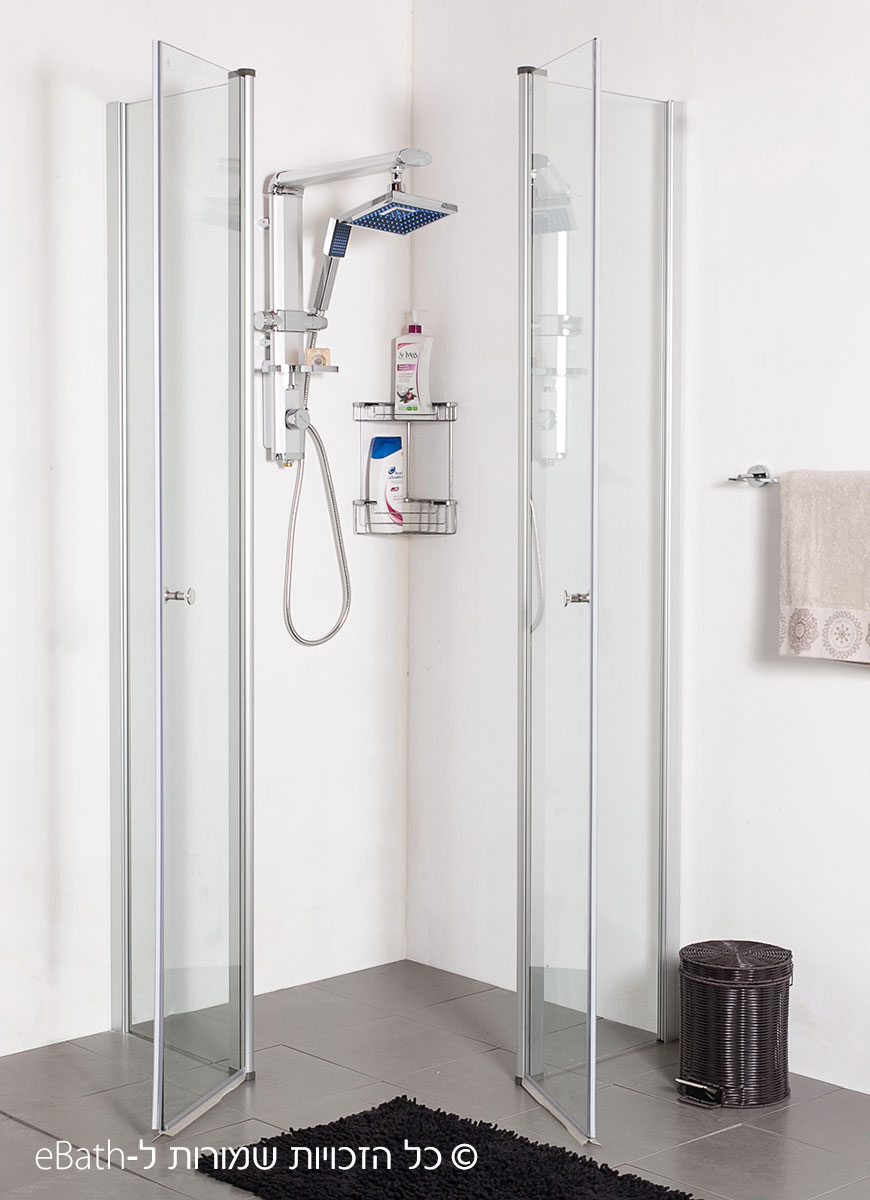 חבילה מומלצת עבור מקלחון פינתי סטנדרט 2 קבועים ו 2 דלתות 80*80 זכוכית שקופה