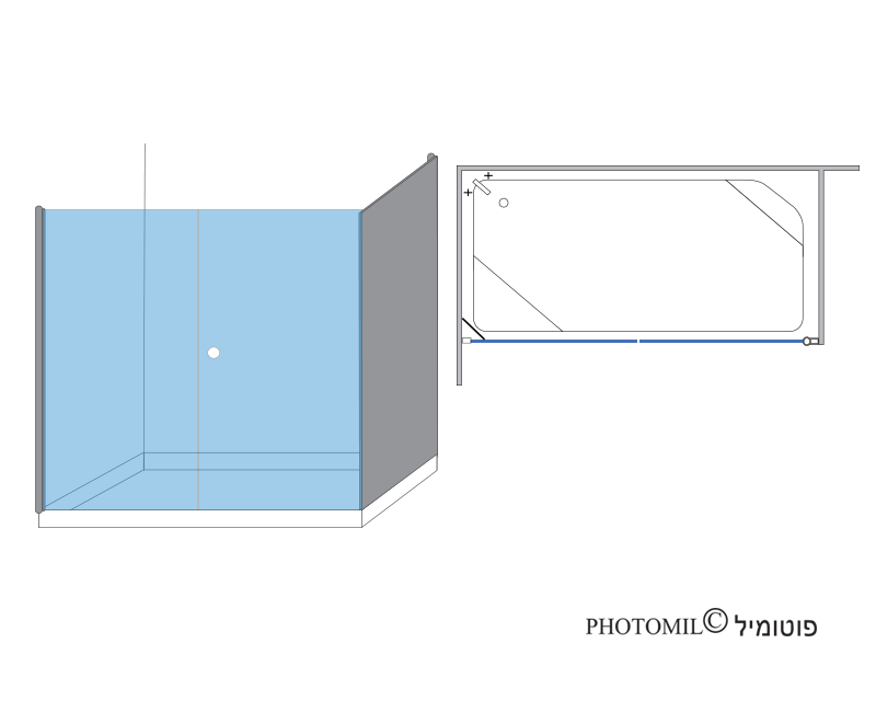 מקלחון חזיתי 8 מ"מ, קבוע ודלת עם פרזול במבחר צבעים