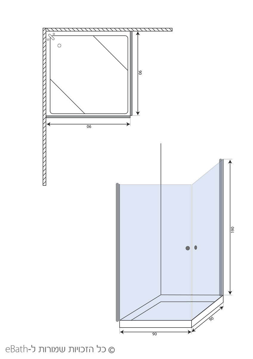 מקלחון פינתי סטנדרט 2 דלתות 90*90 זכוכית פסים