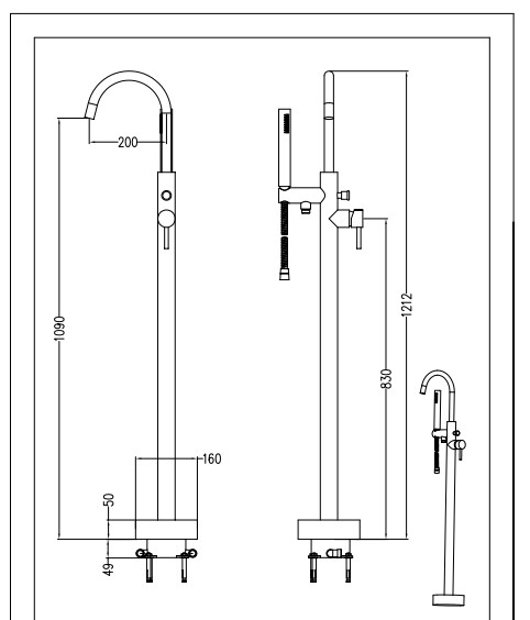 - סוללה מורכבת מהריצפה לאמבטיה עומדת