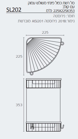 סל רשת פינתי כפול נירוסטה, משולש עמוק