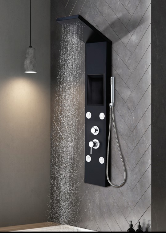 פנל למקלחת עם אינטרפוץ מובנה שחור מט